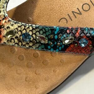 Vionic lucia multi colored jeweled teal red thongs like new condition size 6