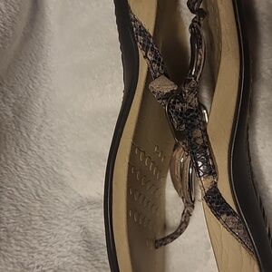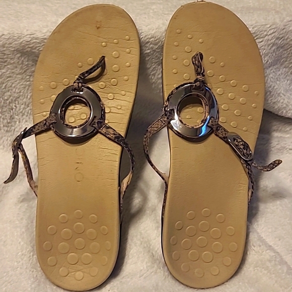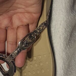 Vionic snake skin Slip on Thong Sandals in good used condition. Minor wear throughout as shown in the photographs. Leather Uppers