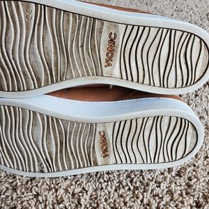 Good condition Vionic slip on/zip shoes. Minimal wear to soles, a couple small scuffs on the toes and spots on the leather.