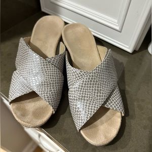 Great neutral colored wedges, style is Leticia, color is Aluminum. Adjustable Velcro strap, only worn a handful of times, in excellent condition.