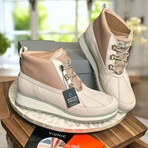 casual ankle boots, beige neutral shoes, waterproof fashion boots, lace up streetwear boots, minimalist style boots, comfy walking shoes, everyday wear boots, travel waterproof boots, womens casual sneakers boots waterproof hiking boots, leather canvas boots, lace up waterproof shoes, vionic arch support, orthotic comfort boots, womens outdoor walking boots, waterproof leather sneakers, all weather vionic boots