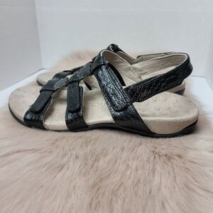 Vionic Amber Strappy Black Leather Open Toe Women's Sandals Shoes Size 9