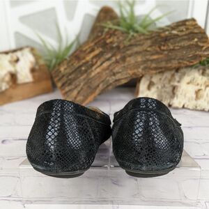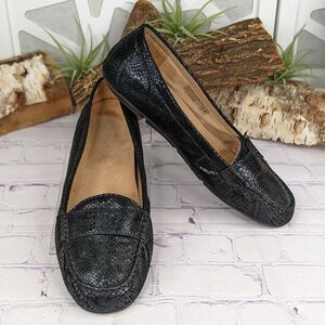 Embrace comfort and style with these VIONIC women's slip-on leather loafers. The metallic snake theme add a touch of sophistication to any outfit, while the almond toe shape and flat style provide both comfort and versatility. These shoes are perfect for any occasion, whether it's a casual day out, a work event, or a party.