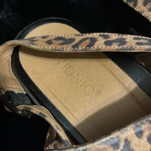 Like new condition Vionic ankle strap sandals. Only flaw is minor peeling on sole on left shoe- shown in pics