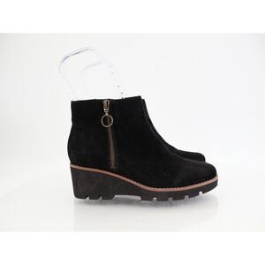 Vionic Hazal Water Repellent Ankle Boots Zip Suede Wedge Size 6 Black Orthopedic