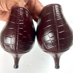 Experience the perfect blend of style and comfort with Vionic's wine color kitten heel featuring a luxurious croc-embossed texture. These shoes offer a sleek silhouette ideal for professional settings, ensuring you step out with confidence and elegance. Gently worn in almost new condition.