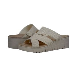 Step into comfort and style with these cream woven slide sandals, perfect for any casual outing. They have been worn twice. Please refer to the last photo for more details.