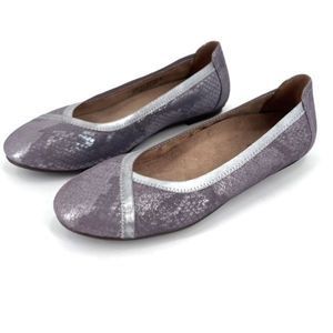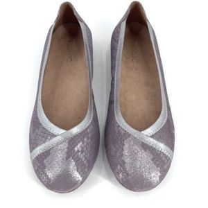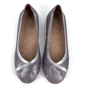 VionicĀ Womens SparkāCarroll Pewter Round Toe Slip On Ballet Flat Silver Size 8.5