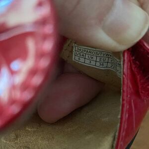 Red patent crocodile print sandals. Rubber soles. Arch support. Three point adjustable straps. Comfort shoes.