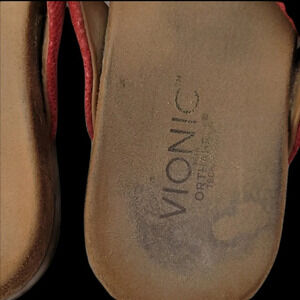 Vionic sandals with a gold buckle decoration. Size 7.5. Smoke free home. AK 031224