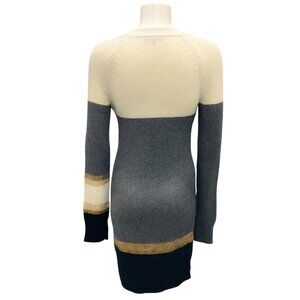 Vionnet Ivory / Charcoal Grey / Gold Metallic / Black Striped Long Sleeved Knit Dress