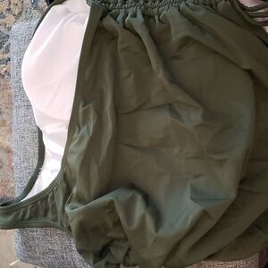 Viottiset One Shoulder Ruched Tummy Control High Cut Army Green Swim Suit SZ XL