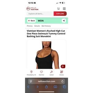 Viottiset Womens Ruched High Cut 1-Piece Swimsuit Tummy Control Cheeky Black XL