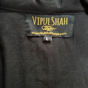 Vipul Shah Hand-Embroidered Black Open-Front Jacket With Floral Ivory Threadwork