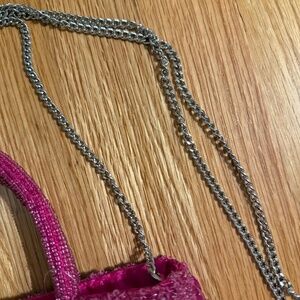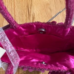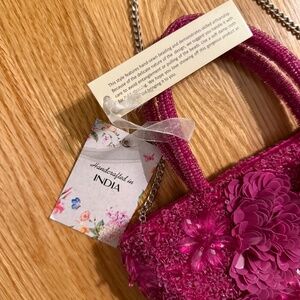 This Fuchsia/Pink Viral Beaded Bag Has Intricate Beading Detail And Flower Design! Even The Handles Are Beaded! Magnet Snap Closure & Silver Chain! Handcrafted In India