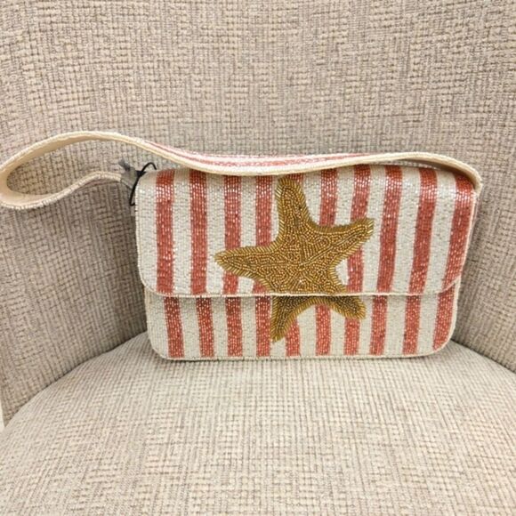 Viral Beaded Gold Starfish Striped Shoulder Bag