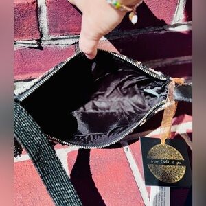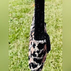 Make a fierce statement with this hand-beaded leopard print shoulder bag. Featuring shimmering black, blush, and ivory beading with a luxe black strap, this bag is perfect for a night out, special event, or adding bold flair to your everyday look. Rare boutique-style find from stores like Marshalls & TJ Maxx – highly sought after and hard to find.