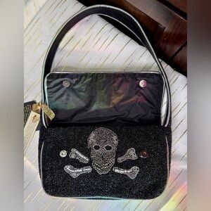 💀 Viral Beaded Skull & Crossbones Shoulder Bag – Black & Silver Gothic Purse