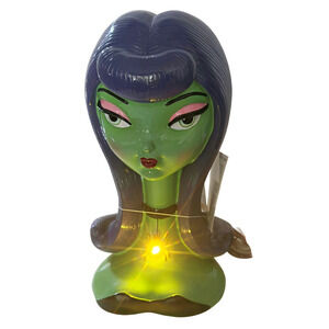 Viral Halloween Green Girl Purple Hair Bust LED Spider Necklace Bella Lux NWT