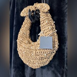 🤎🤎Viral Haute Hippie Straw Crochet Beaded Hobo Faux Pearl Handbag🤎🤎 NWT