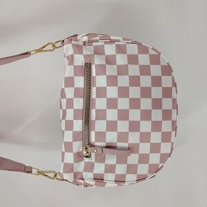 Viral Mary Poppins Bag Pink And White Check Crossbody Bag New