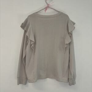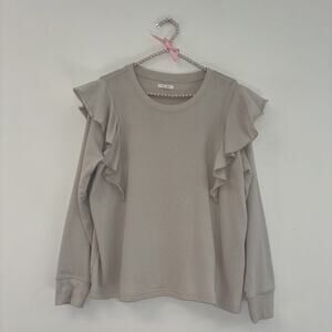 Viral Sweatshirt Sweater Sz Lg Ruffle Flutter Boho Inspired Tan Beige Comfy Casu