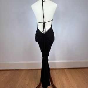 EXTREMELY low plunging back. Gorgeous gorgeous dress.