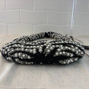 Viral Zebra Hobo Bag - Made in India - Black, White, Silver and Pearls