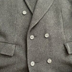 Virany 100% Wool Overcoat Men Sz 44 Black Gray Soft Hungary Top Coat Lined Long