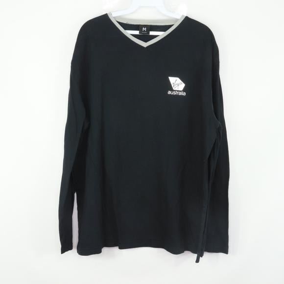 Virgin Australia Mens Medium Spell Out Long Sleeve V Neck Employee T Shirt Black