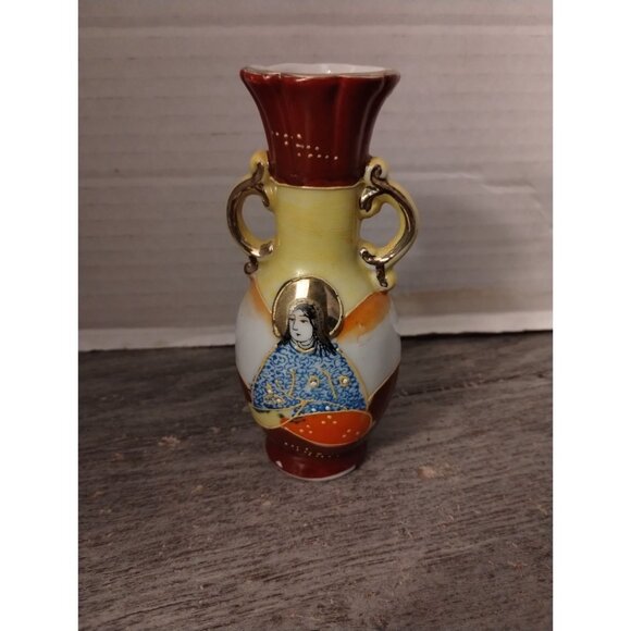 Virgin Mary 4.5" Made in Occupied Japan Porcelain Handled Vase Condition: Pre-Owned