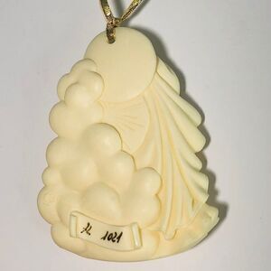 This sculptural ornament features intricate detail and a soft ivory tone, making it a meaningful religious keepsake or Christmas gift. Signed by the artist and marked #7L 1024 (see photos).