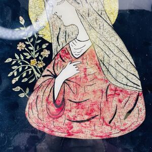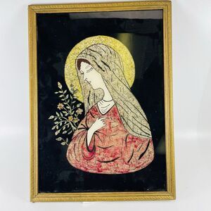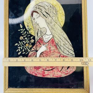 Vintage Virgin Mary Foil Backed Reverse Painted Silhouette Art Framed 14x10