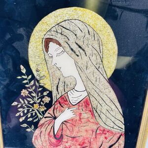 Keywords: Vintage, Virgin Mary, Reverse Painted, Silhouette, Art, Framed, Religious Art, Catholic, Christian, Icon, Foil Backed, Wall Hanging, Home Decor, Collectible, Spiritual,Virgin Mary Foil Backed Reverse Painted Silhouette Art Framed 14x10 Vintage