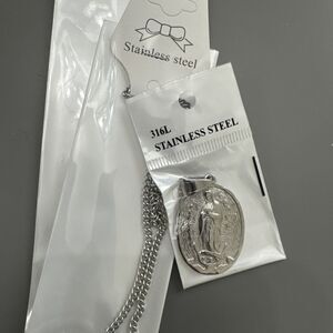 Virgin Mary Stainless Steel Pendant Jesus Christ Religious Faith 24 Inch Necklac