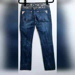 Virgin Only Dark Wash Distressed Low Rise Bejeweled Jeans size 28