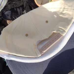 Cream and blue cap with Virginia Beach embroidery. Features a sailboat design.