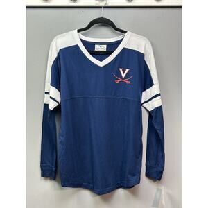 Virginia Cavaliers Shirt Womens Small Blue Spellout V neck ACC Graphic Blue NEW