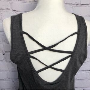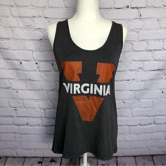 Virginia College Logo Tank Top Charcoal Heather Gray Criss Cross Back Medium