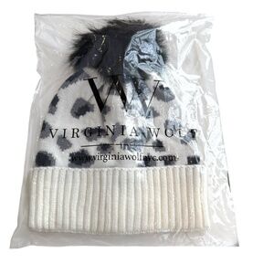 Virginia Wolf Leopard Beanie Faux Fur Pom Hat Women NEW