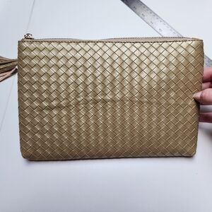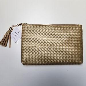 NEW Virginia Wolf Mimi Woven Pouch in Gold Metallic. Only removed from original packaging for photos. Smoke-free, pet-free home.