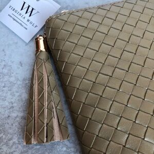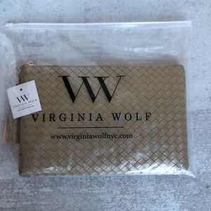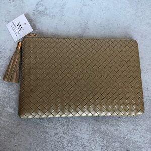 Virginia Wolf NYC Mimi Woven Metallic Gold Faux Leather Clutch Pouch