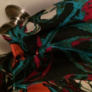 Abstract Floral Pattern with Orange Aqua White Black & Maroon Colors