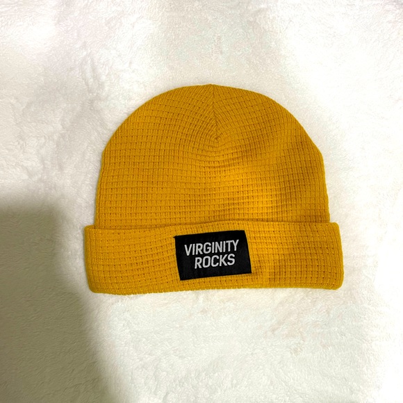 Dark gold virginity rocks beanie. Lightly worn and in great condition! Super comfy and can go with anything!