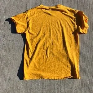 Brighten your wardrobe with this vibrant yellow graphic t-shirt. Perfect for casual outings, it offers comfort and style.