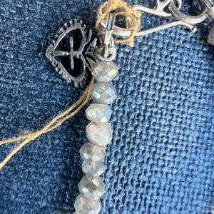 Tags still on. Never worn. Virgins, Saints & Angels. Length is 19.5" Sparkly- Silver and Natural tone gemstones.Black Tassel. Please see all photos. Comes with original Jewelry Case.
