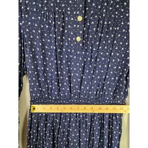 Virgo II Floral Navy Dress 12 Long Sleeve Button Front Pleated Skirt