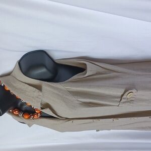 Virgo II Vintage Tan/Khaki Linen blend Sleeveless Shirt Dress, Maxi, sz 12