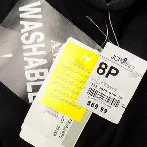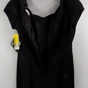Virgo Petite Black Short Sleeve Dress 1/2 Zip Back Full-Length Size 8P 100% Polyester Bottom of dress as slit to knee. Built-in shoulder pads BRAND NEW WITH TAGS! 1805