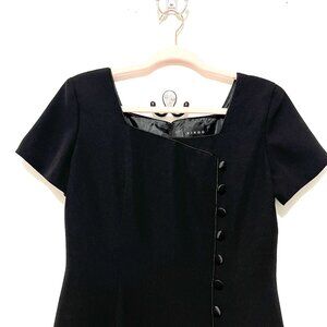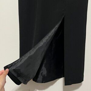Style: Vintage, retro, femme fatale, moody, witchy, formal, asymmetrical button detail, 16" front slit
